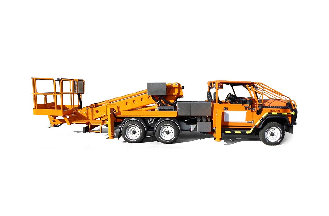 5-członowy wysięgnik główny ze stali wysokowytrzymałej osiąga 18 m wysokości roboczej i 6,3 m wysięgu dla 240 kg. System 4 podpór z rozstawem 2,43 x 3,35 m zapewnia stabilność w obrysie pojazdu. Możliwość pracy na pochyleniu gruntu do 2° zwiększa uniwersalność zastosowania.