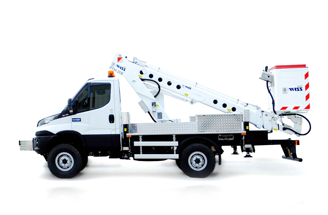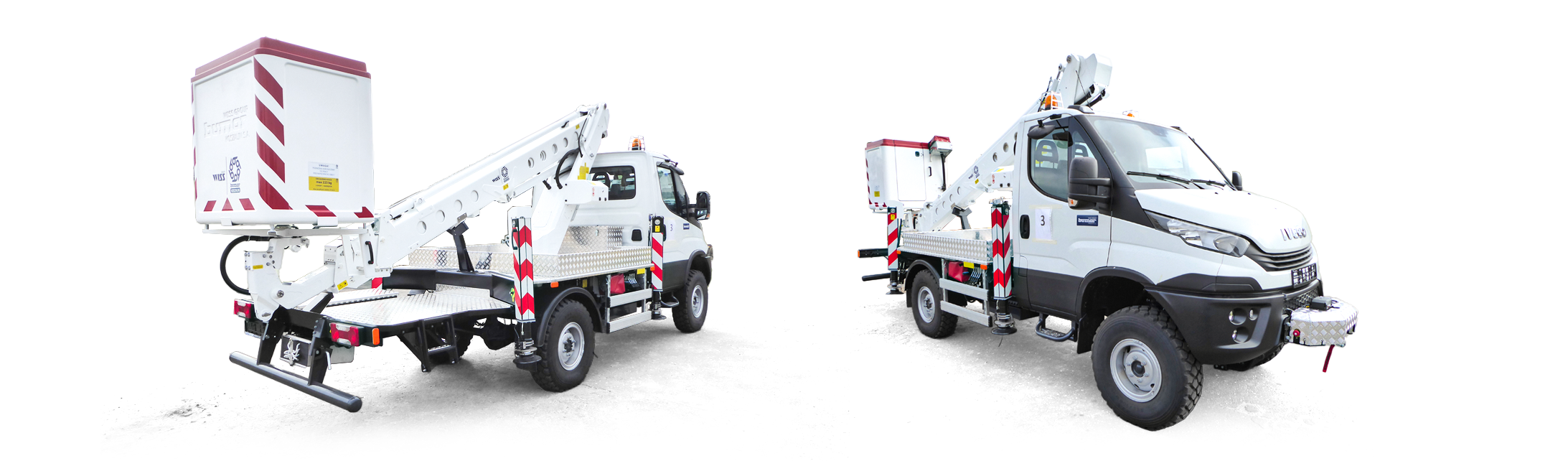 Iveco Daily 55S18H WX 4x4 z silnikiem 176 KM i manualną skrzynią biegów zapewnia niezawodność w trudnych warunkach terenowych. Napęd 4x4 z rozstawem osi 3480 mm lub 3780 mm gwarantuje stabilność podczas pracy z 20-metrowym podnośnikiem. Konstrukcja podwozia wzmocniona do kategorii 5,5 tony z zachowaniem kompaktowych wymiarów i manewrowości.