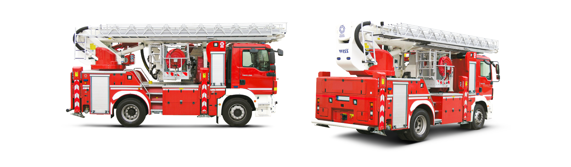 Konstrukcja z metalu i kompozytu poliestrowego z 9 skrytkami (4+4+1) zapewnia optymalne rozmieszczenie sprzętu. Zabudowa zgodna z normą EN 1777 gwarantuje najwyższe standardy bezpieczeństwa i funkcjonalności. Wbudowany agregat prądotwórczy i podkłady pod podpory oraz systemy blokad i automatycznego dopasowania pola pracy.