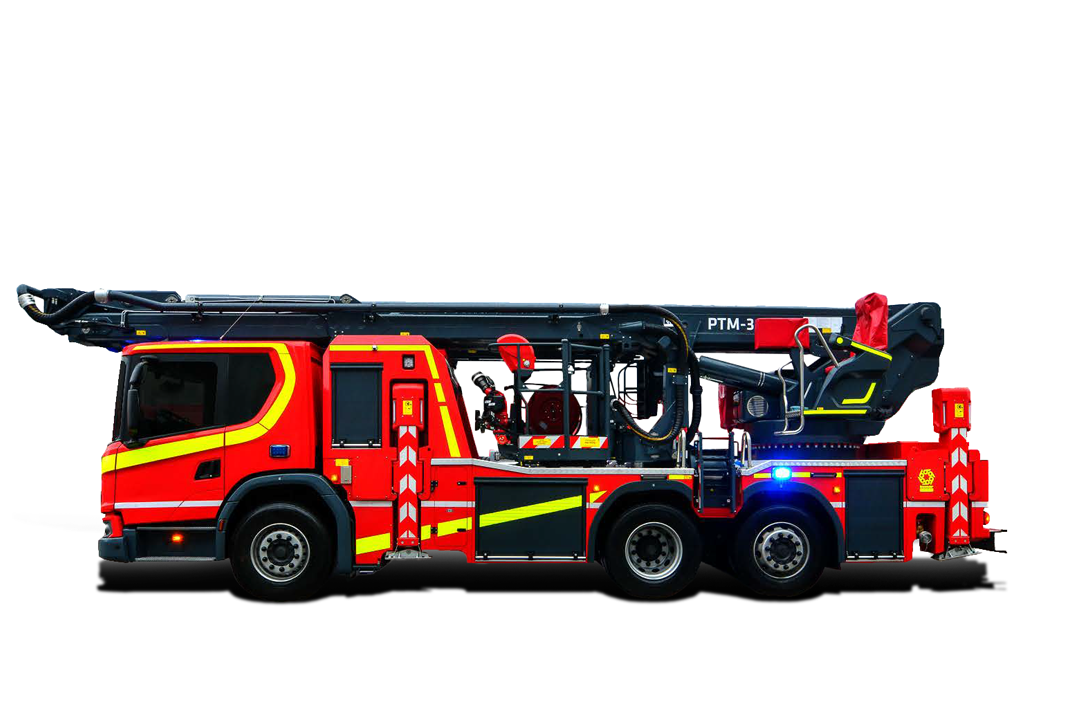 SCANIA L360 6x2* z silnikiem 360 kW i zautomatyzowaną skrzynią biegów zapewnia wysoką wydajność podczas operacji ratowniczych. Napęd 6x2* z rozstawem osi 3750 mm gwarantuje stabilność podczas pracy z 36-metrowym podnośnikiem. Pneumatyczne zawieszenie z przodu i z tyłu dostosowane do komfortowej pracy z bardzo wysokim wysięgiem i precyzyjnego pozycjonowania.